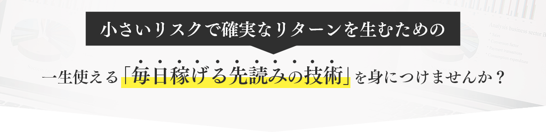 毎日利益が得られる”一生モノの先読みの技術”が身につく環境を手に入れるという選択肢です。