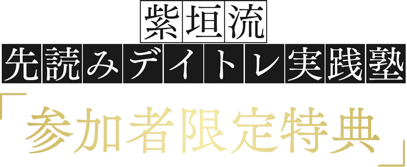 そう考えると、今回の【紫垣流】先読みデイトレ実践塾の参加費用は、破格だと言えるでしょう。